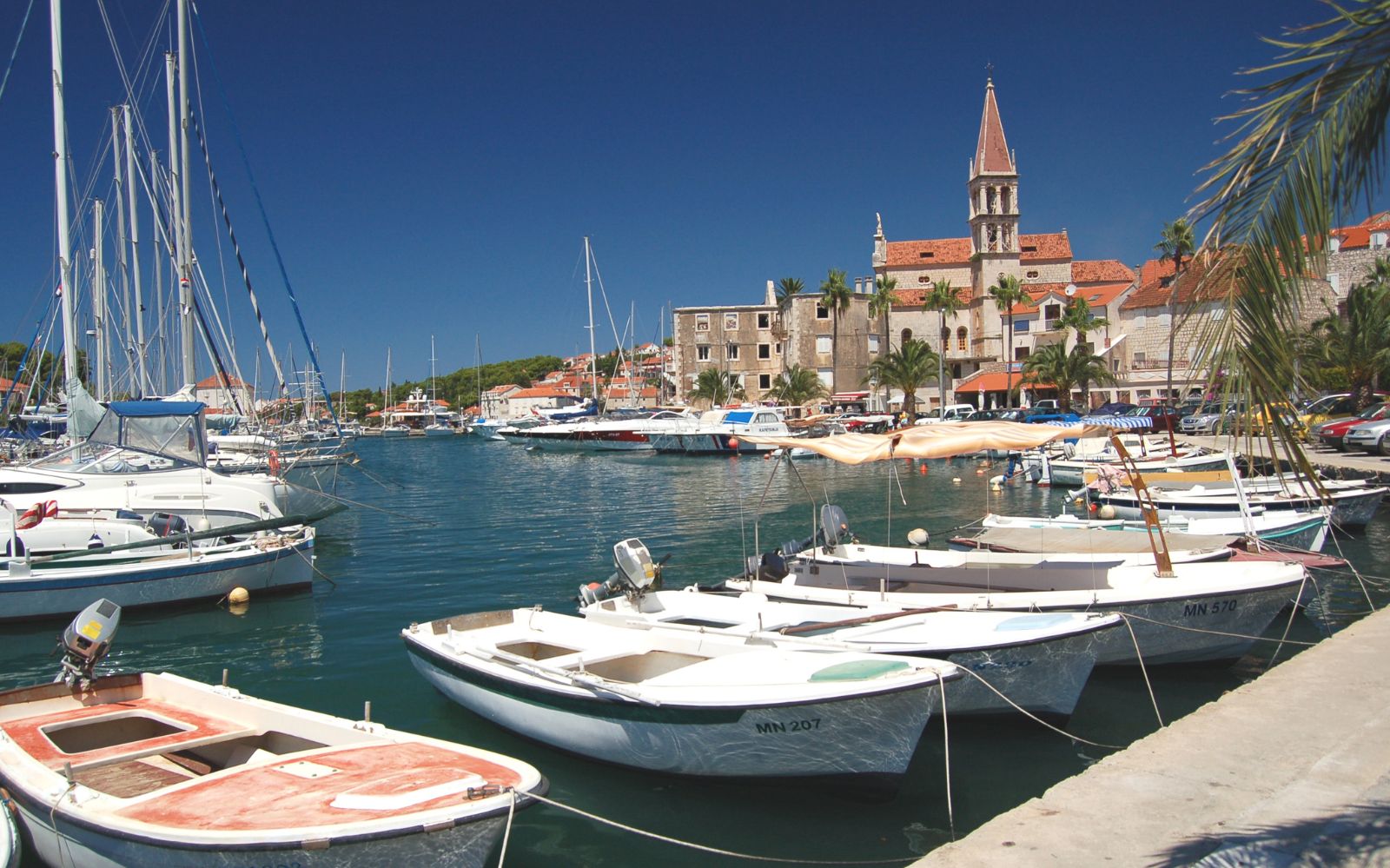 After you meet the crew and take a tour around the boat, you will sail towards the island of Brač. You will spend the night in some beautiful quiet bay on the island’s western side, near the picturesque town of Milna. Dinner will be served aboard, under the stars, and surrounded only by the sounds of sea and crickets. This is an ideal ambient for relaxation after a day or two of travel. If you still want to visit the town, the crew can take you there with a tender boat. Milna is a typical fishing harbor – with stone houses, narrow streets, and a church that dominates the village. Visit this beautiful Baroque church dedicated to Our Lady of the Annunciation. You will enjoy works of Venetian artists while the sounds of a 19th-century organ echo in the background. Bell tower offers a beautiful view. The town of Milna was also known as “Valle di Mille Navi” or “The bay of thousand boats.” This safest harbor on island Brač, surrounded by beautiful bays that offer protection from rough winds, was a shelter for sailors and their boats for centuries. Milna also has a rich shipbuilding tradition, and a unique Croatian sailboat, “bracera,” was designed here.